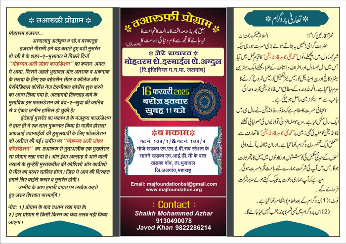 WEL COME TO MOHAMMAD ALI JOHAR FOUNDATION , BHUSAWAL